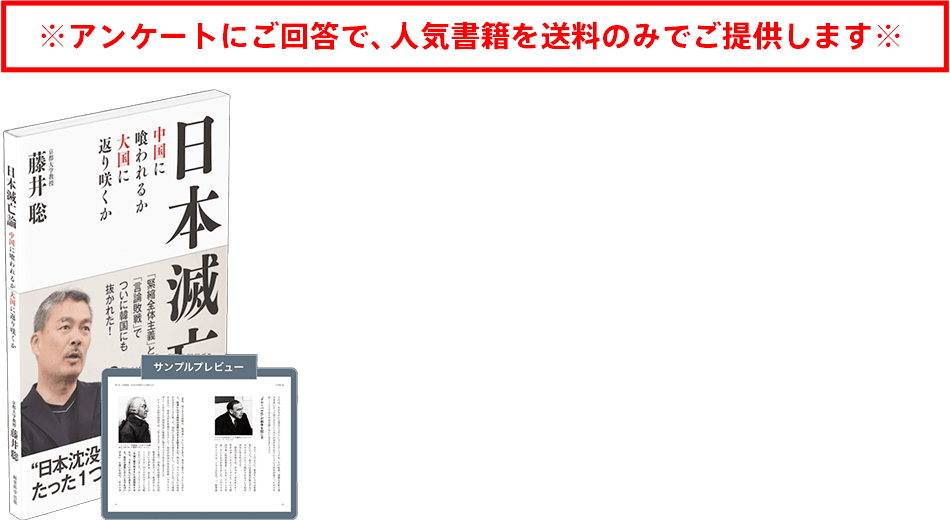『日本滅亡論』はAmazonでは1,078円(税込)で発売中ですが、アンケートにご回答いただくお礼として、書籍を送料550円(税込)のみでご提供いたします。手に入れたいですか?